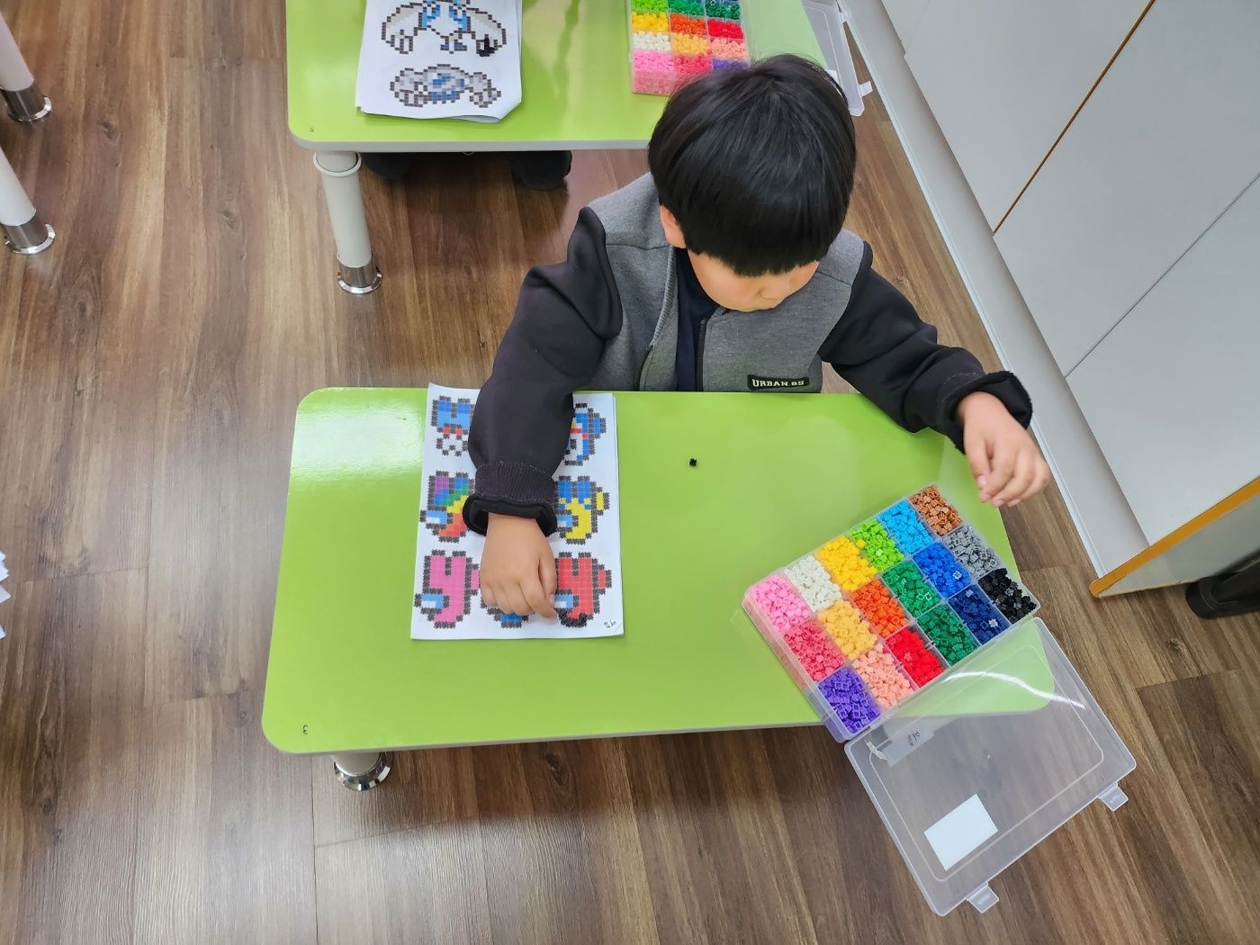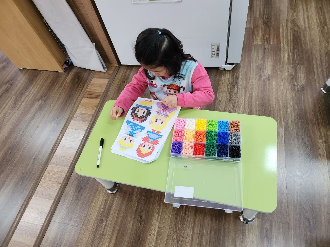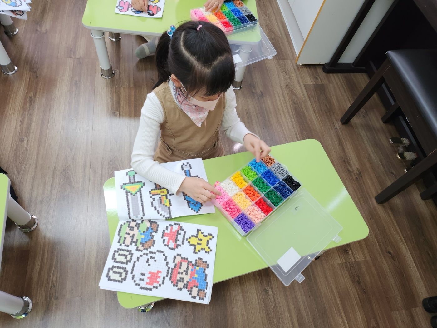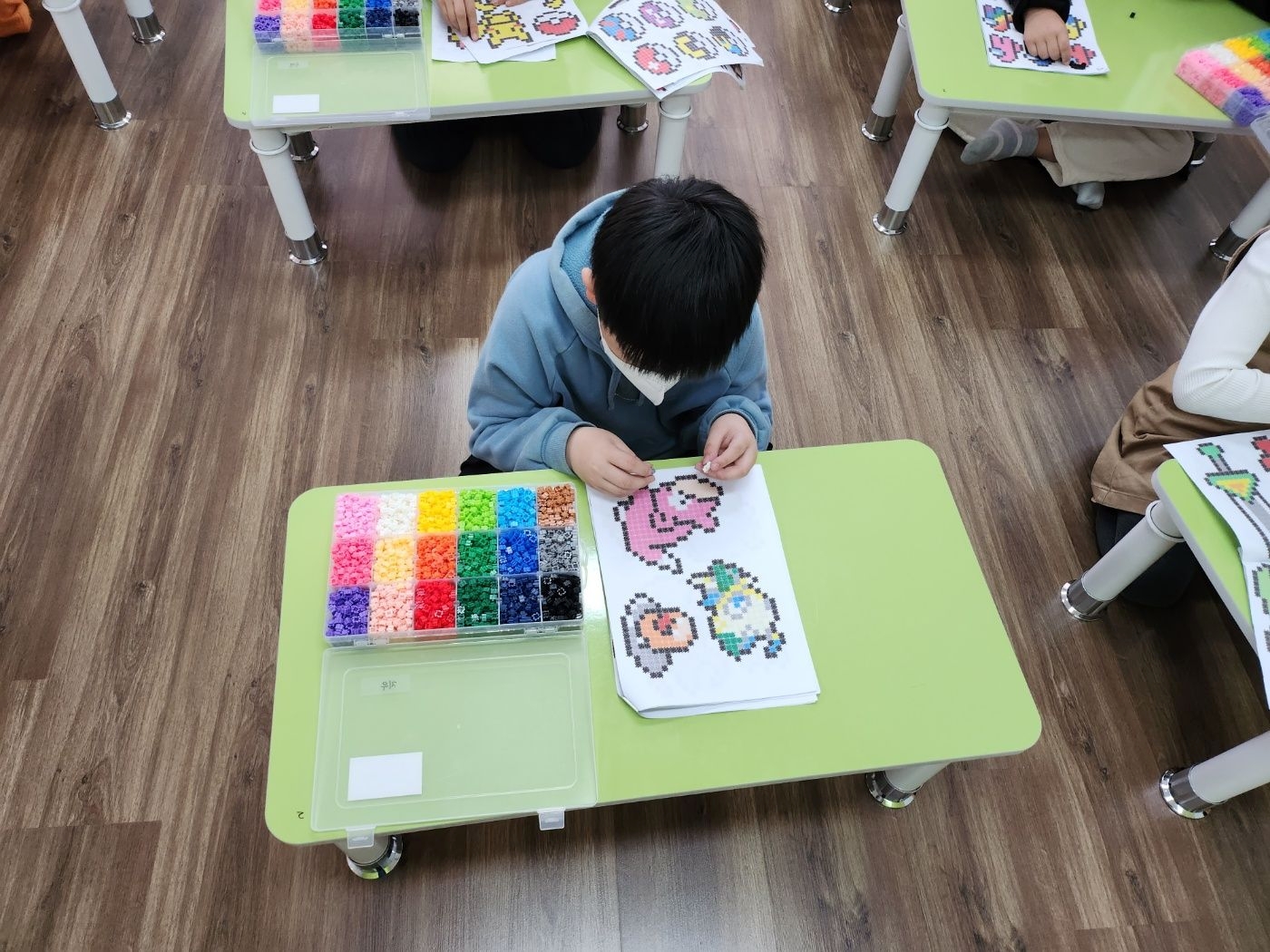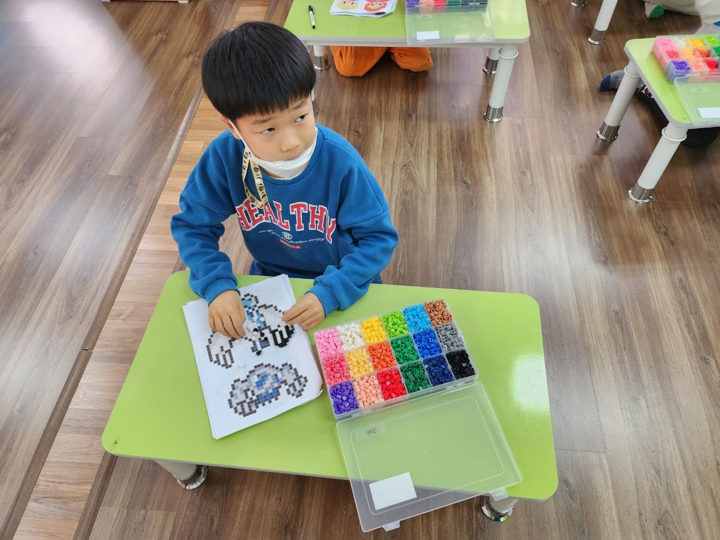 3월10일 활동 모습-색종이 접기(딱지 접어 액자 꾸미기)
