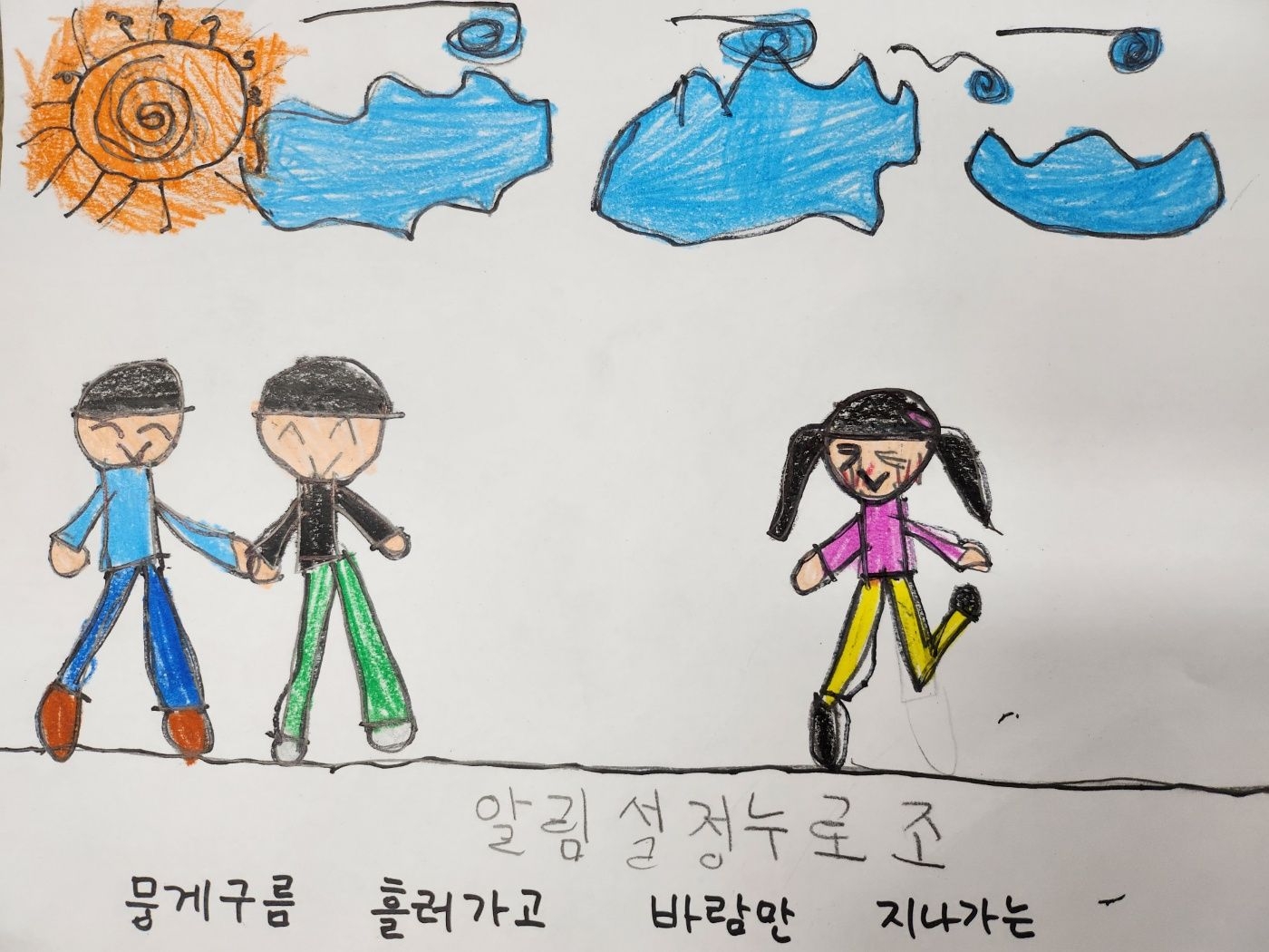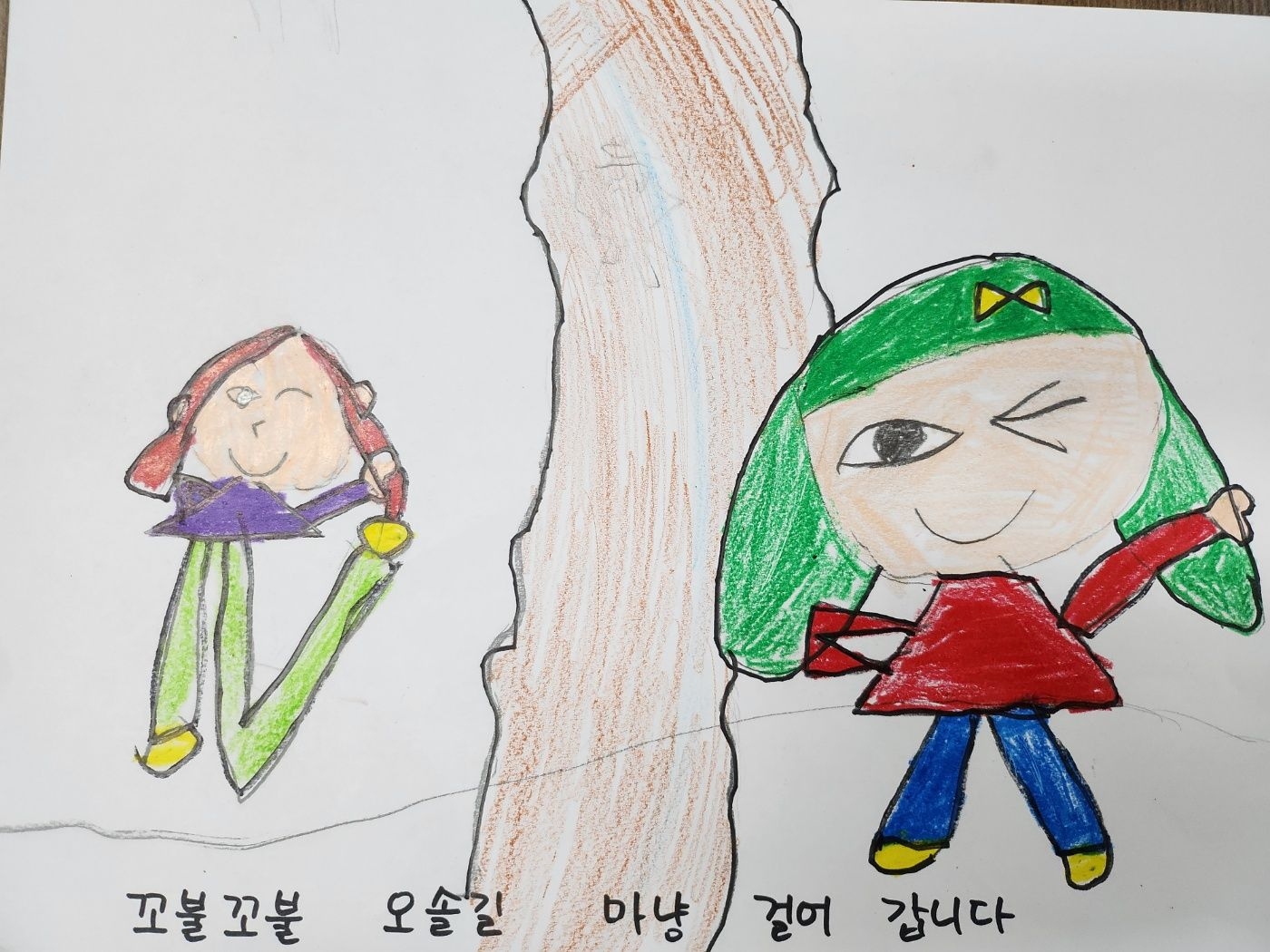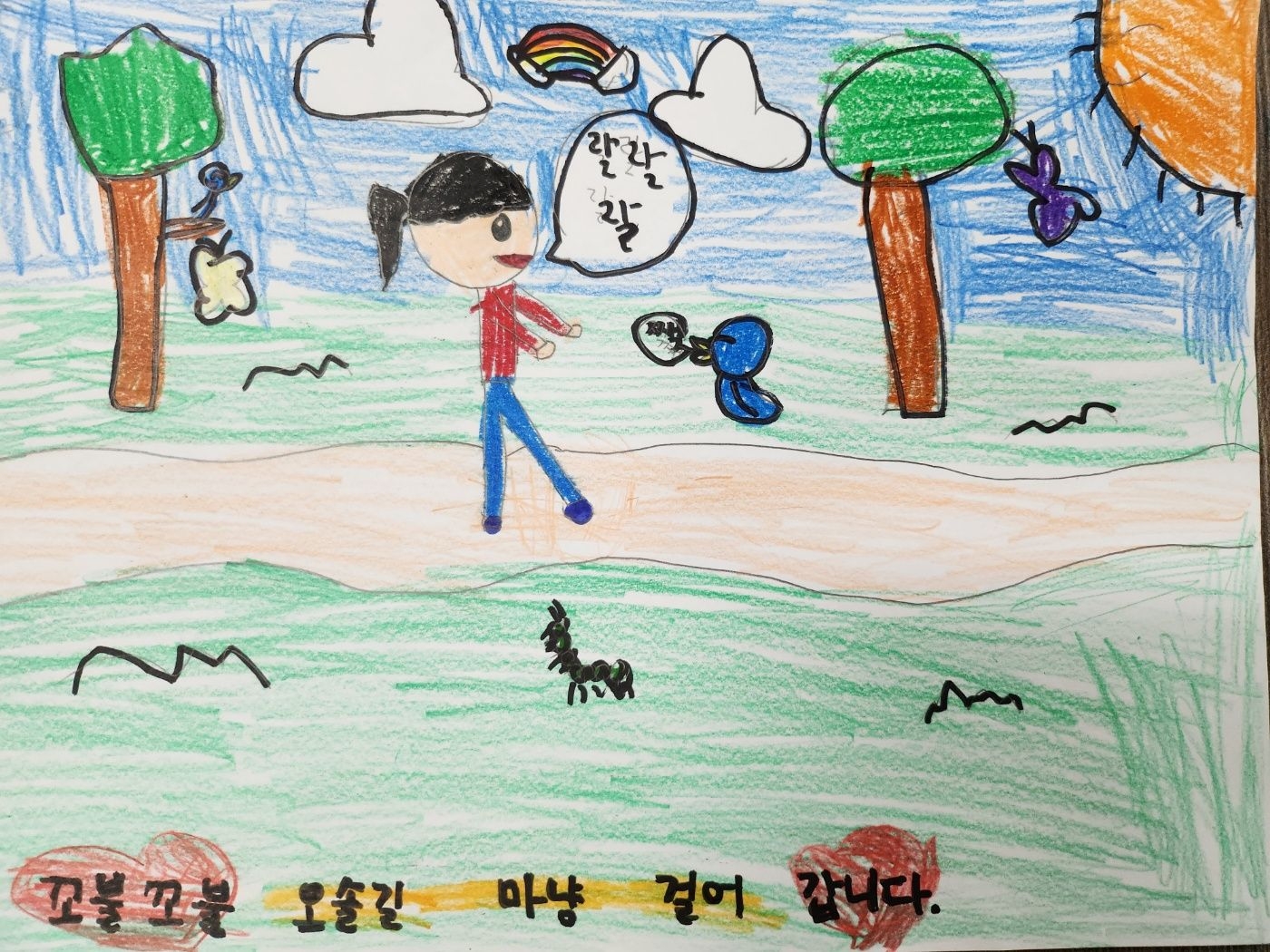 4월25일 활동 모습 - 새노래 '오솔길' 가사에 맞는 그림 표현하기