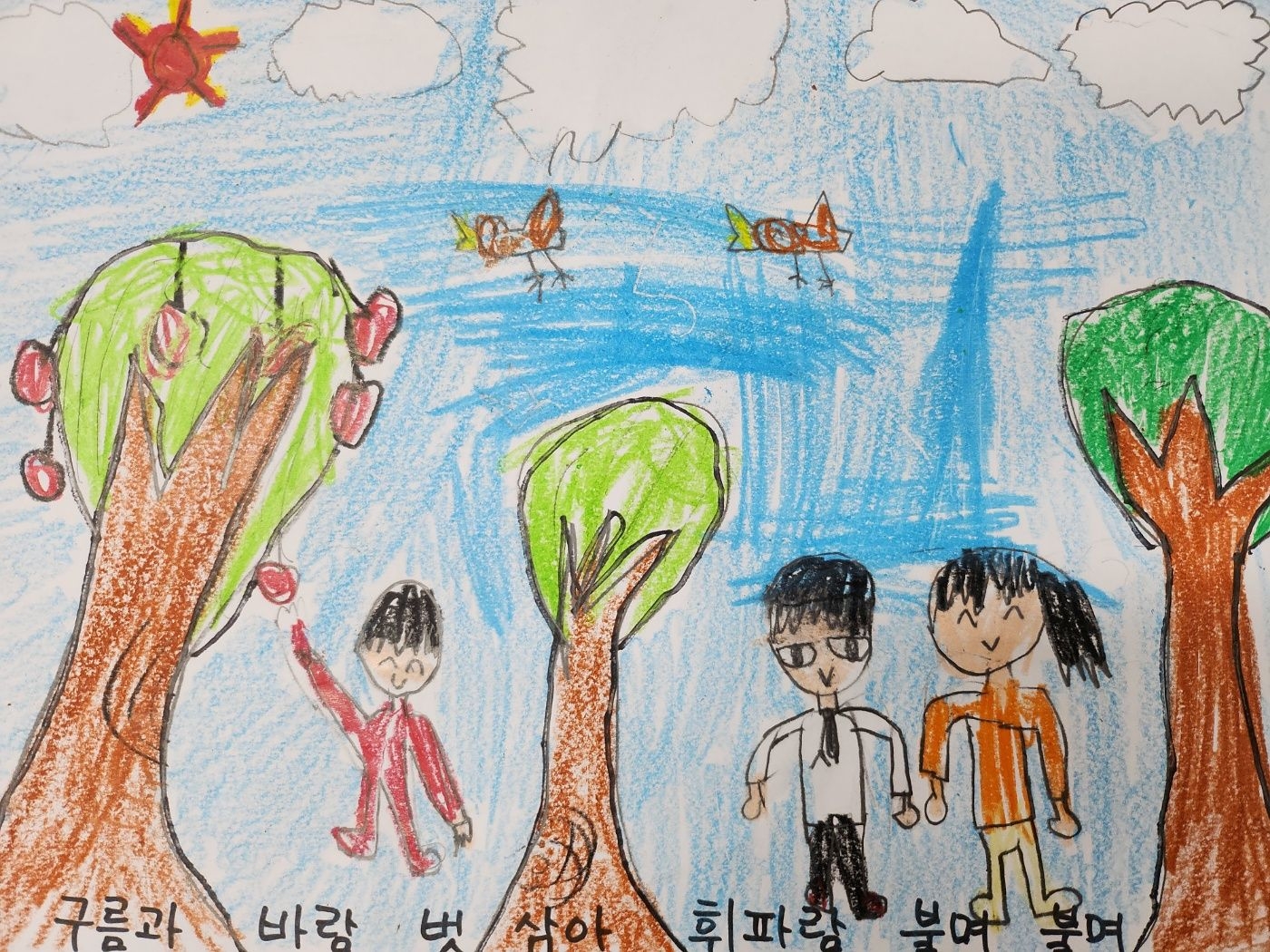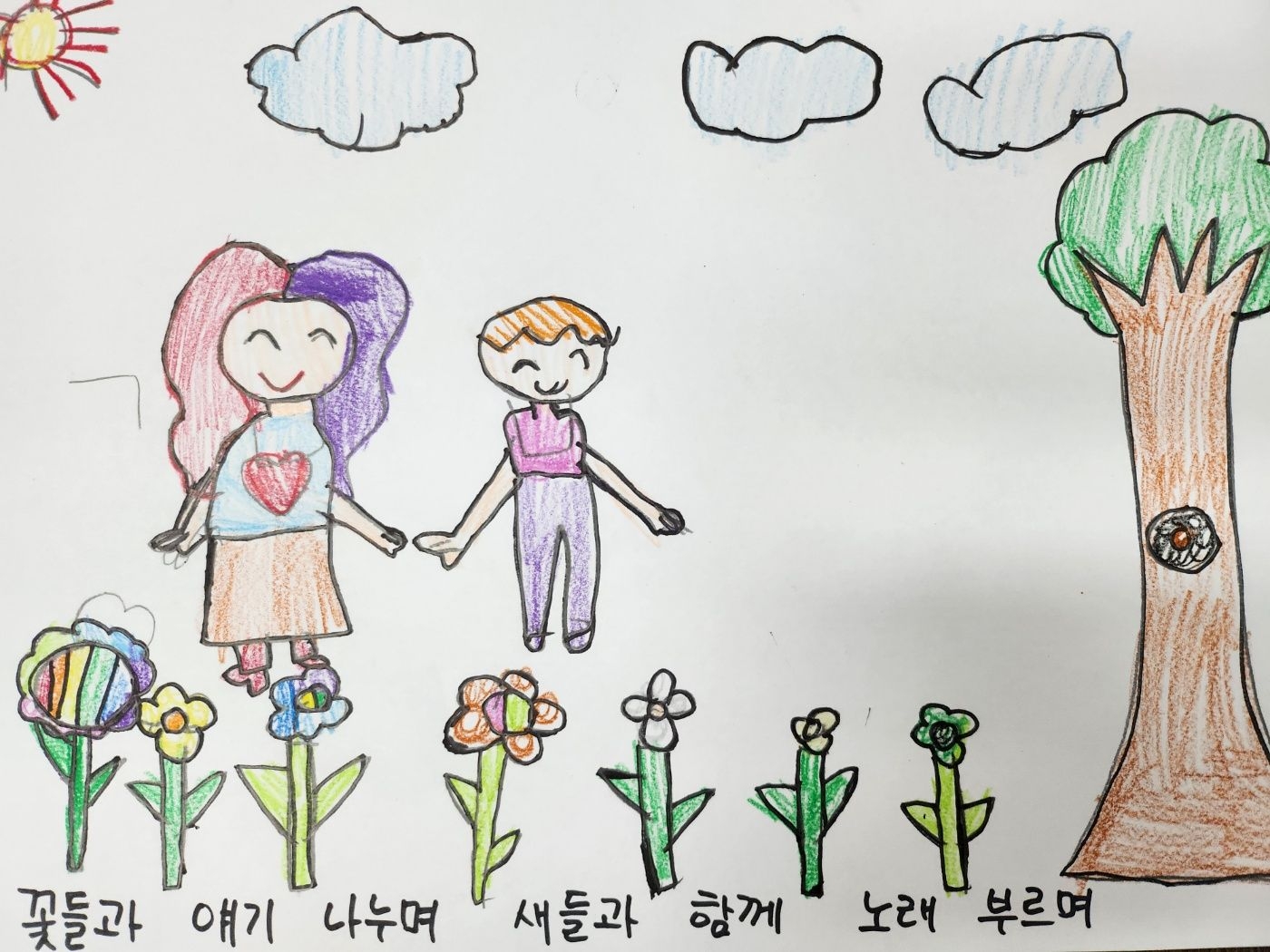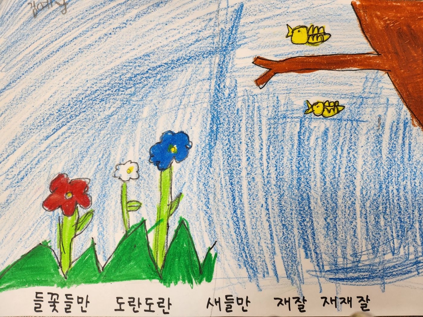4월25일 활동 모습 - 새노래 '오솔길' 가사에 맞는 그림 표현하기