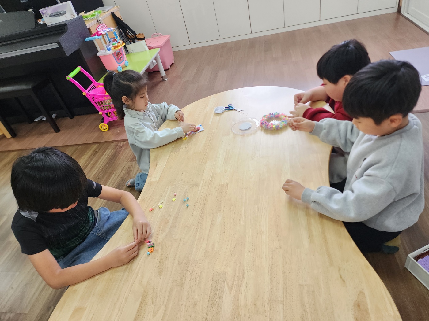 3월6일 활동모습(팔찌만들기 단체사진 손꼽놀이)
